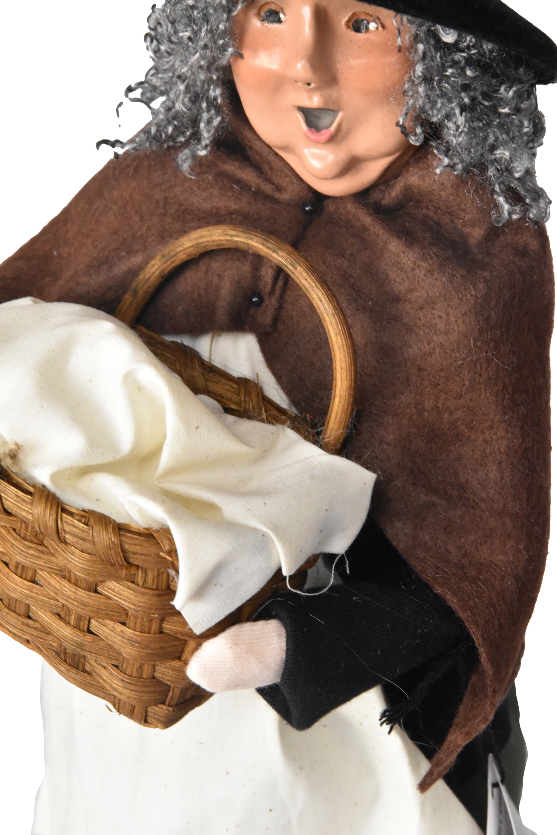This handcrafted Byers’ Choice Mrs. Dilber Caroler is festive and perfect for the Christmas holiday season. A colorful character from A Christmas Carol, Mrs. Dilber, Scrooge’s no-nonsense housekeeper, is known for her sharp wit and practical manner. She shows the story’s contrast between greed and generosity.