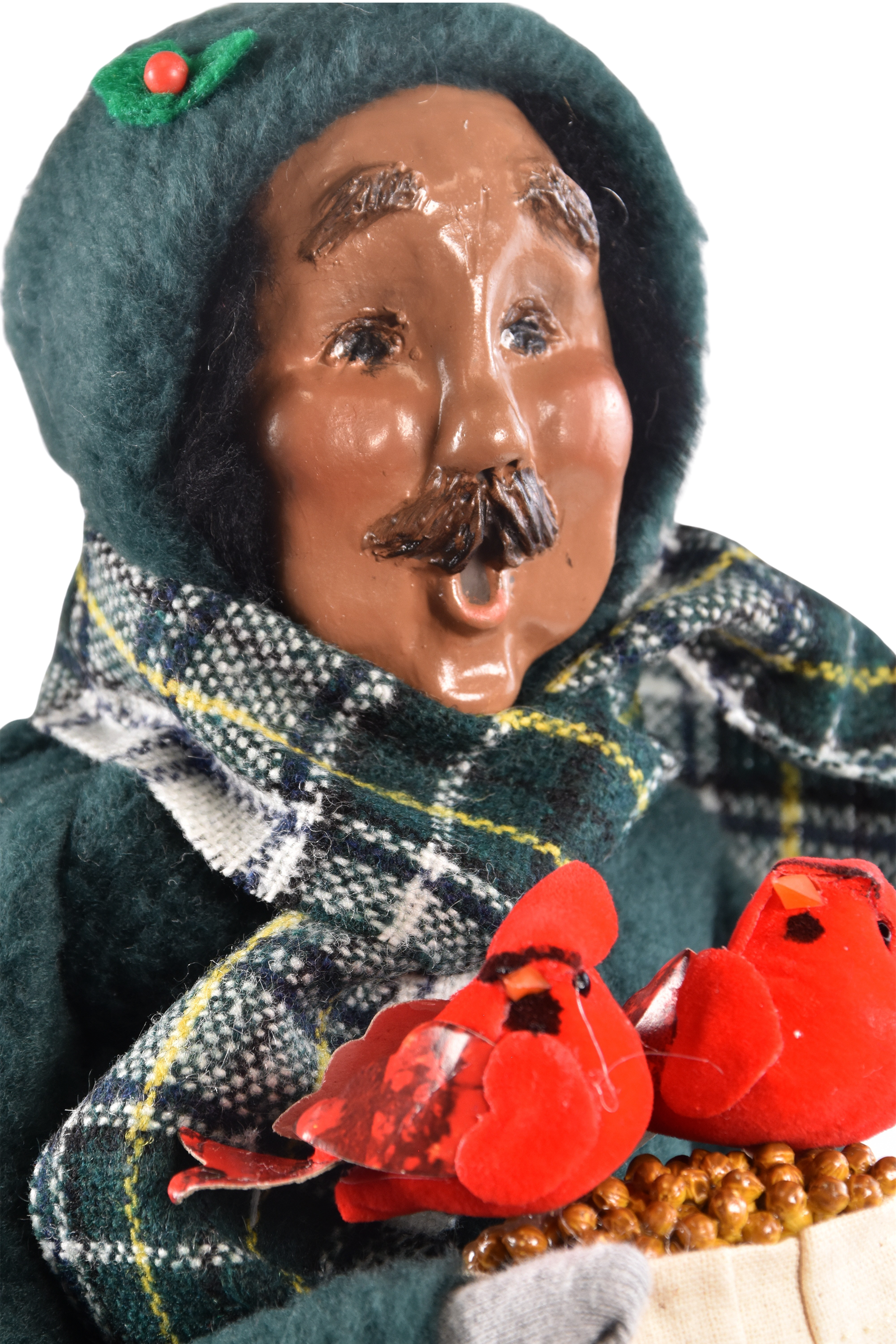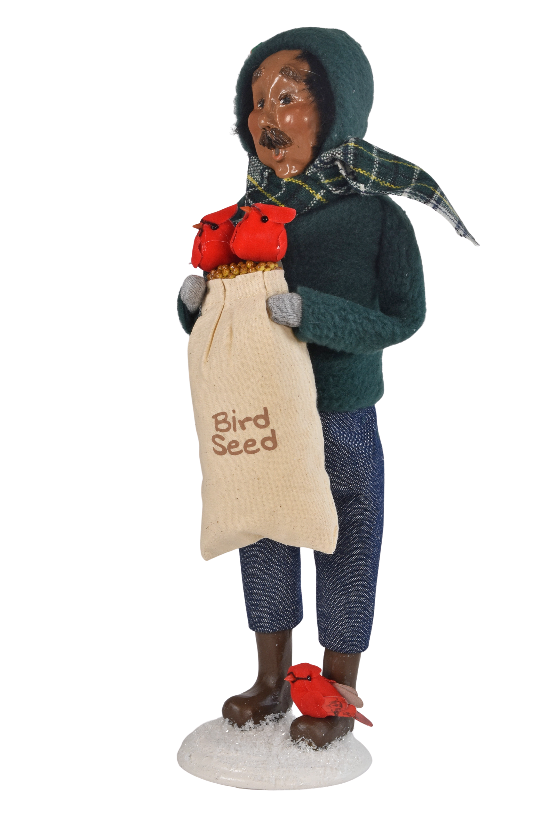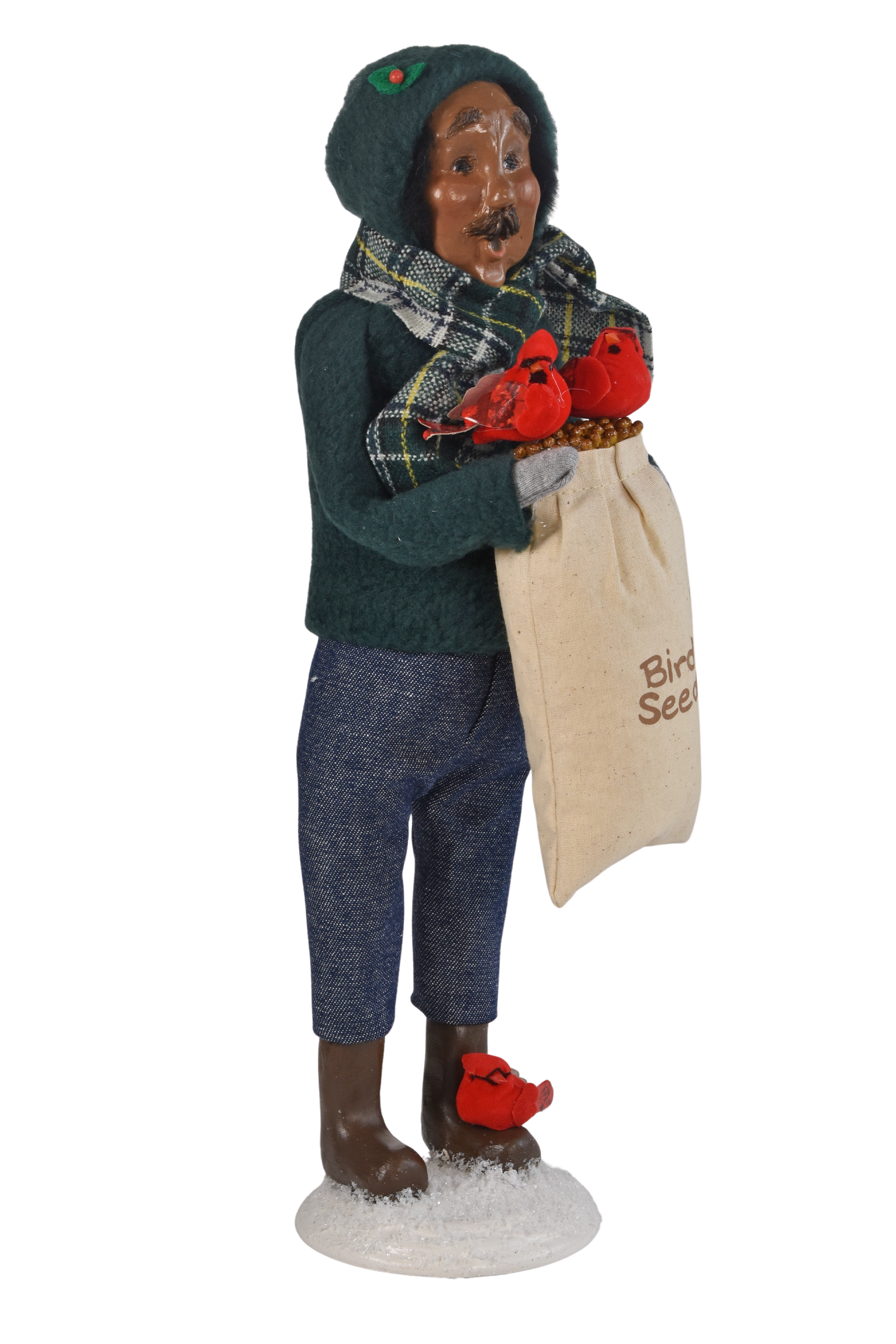 Holding vibrant red cardinals, he stands as a symbol of family connection and seasonal blessings. Inspired by the belief that cardinals appear when loved ones are near, he brings a comforting presence to your holiday home.