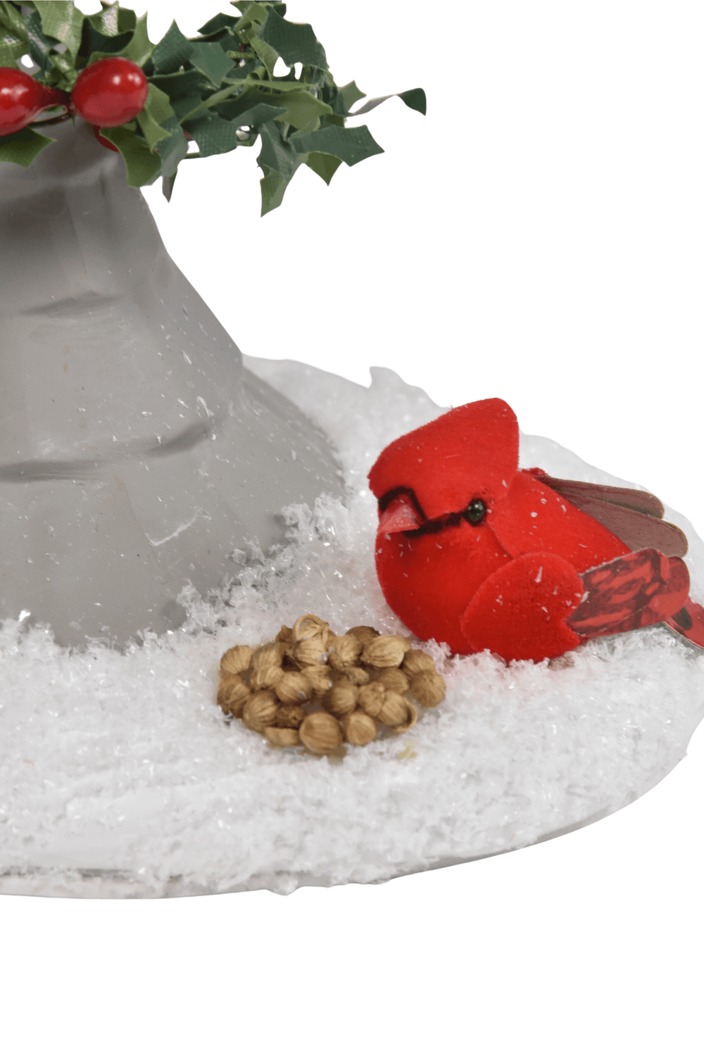 Cardinals have long symbolized hope, joy, and celebration—especially during the winter season when their vivid color stands out against a snowy backdrop. In many cultures, they are also seen as messengers of loved ones or a reminder of faith and renewal. This bird bath brings those sentiments to life and offers a peaceful perch for one of nature’s most beloved holiday icons.