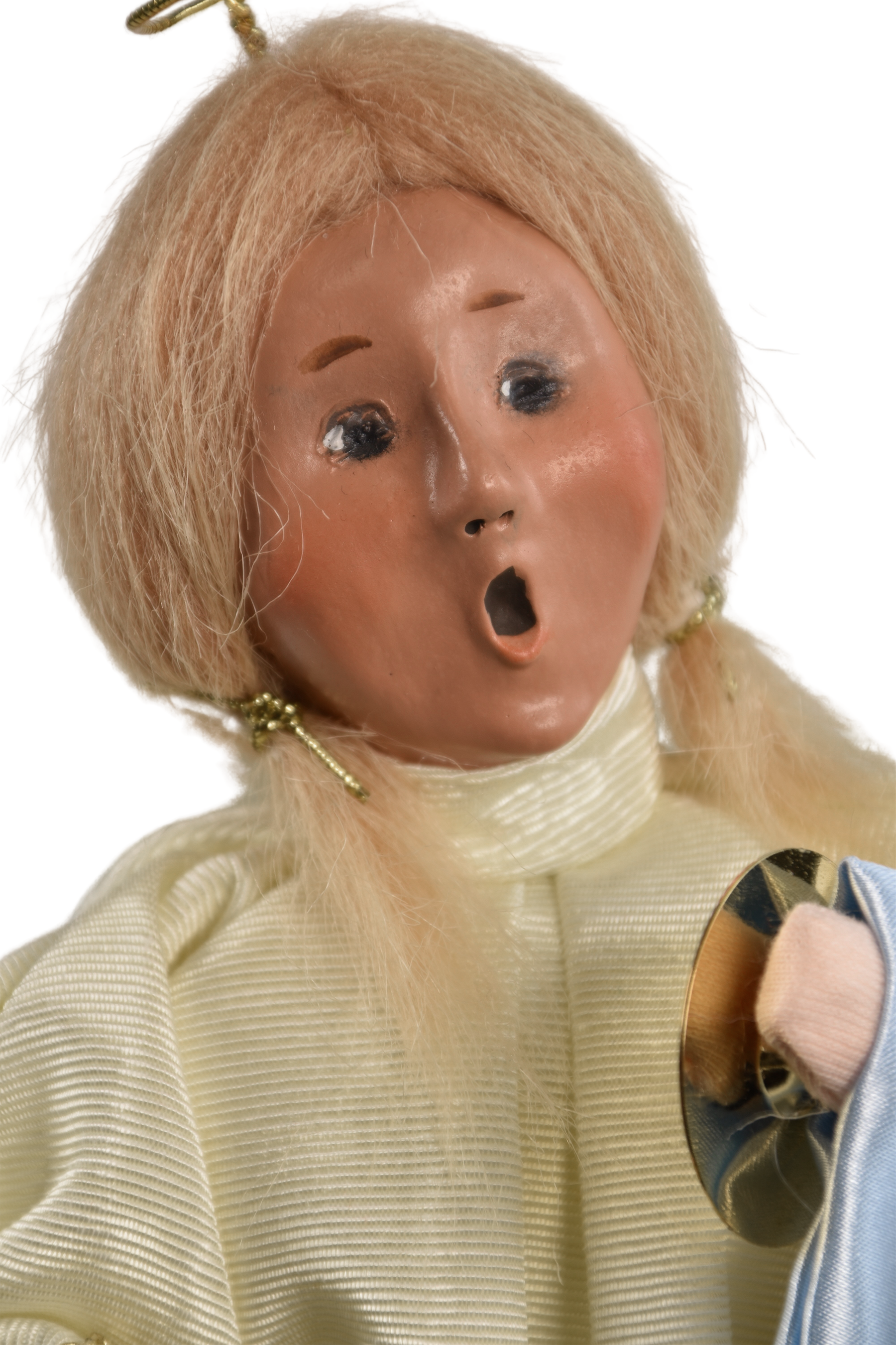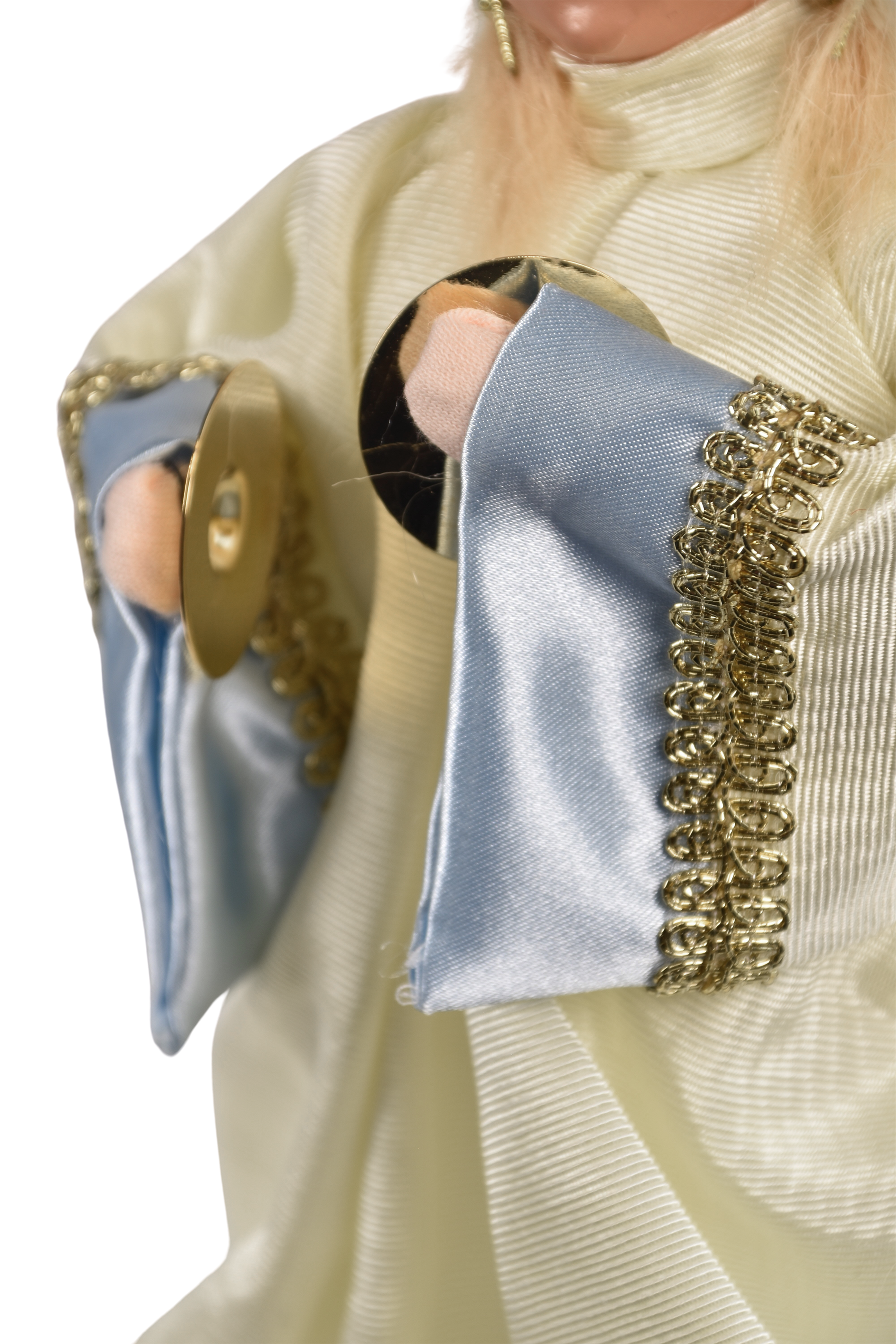 Joyfully clashing her golden cymbals, this angel celebrates the birth of Christ with heavenly music. Paired with the Angel with Harp, she completes the celestial chorus, filling your Nativity scene with movement, sound, and the spirit of divine celebration. A touching tribute to the joy of the season.