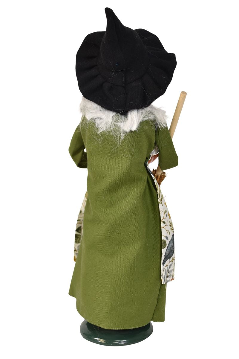 This handcrafted Byers’ Choice Harvest Witch Caroler is festive and perfect for fall and Halloween decorating. Dressed in a rich green gown with an autumn-themed apron, she brings a cozy harvest-season charm to seasonal displays.