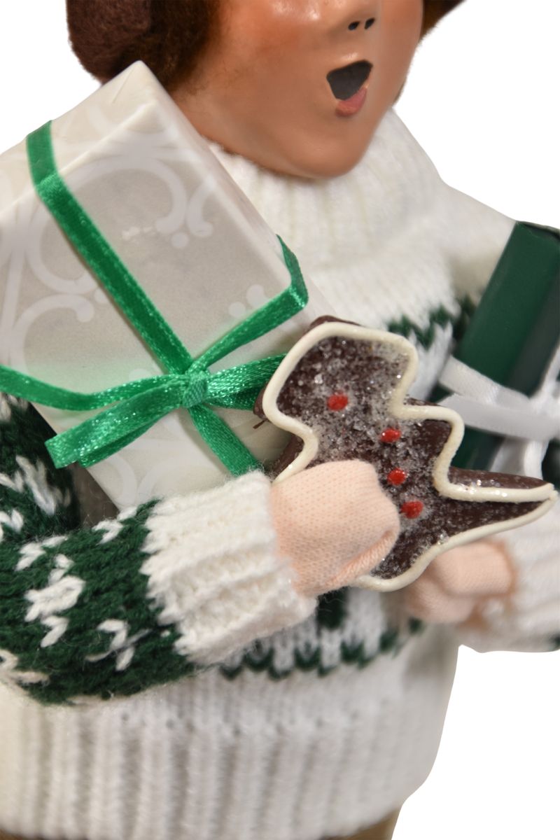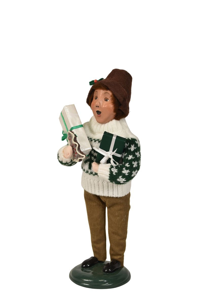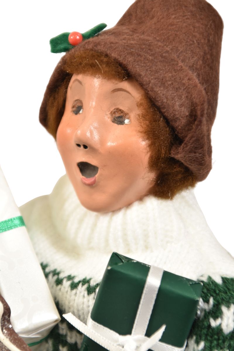 This handcrafted Byers’ Choice Shopping Boy Caroler is festive and perfect for Christmas decorating. Wearing a warm winter sweater and carrying holiday treasures, he adds playful spirit to Christmas shopping scenes.