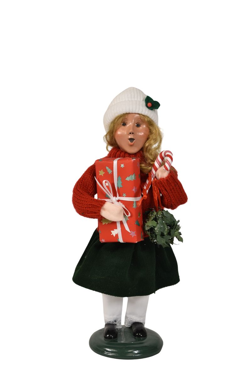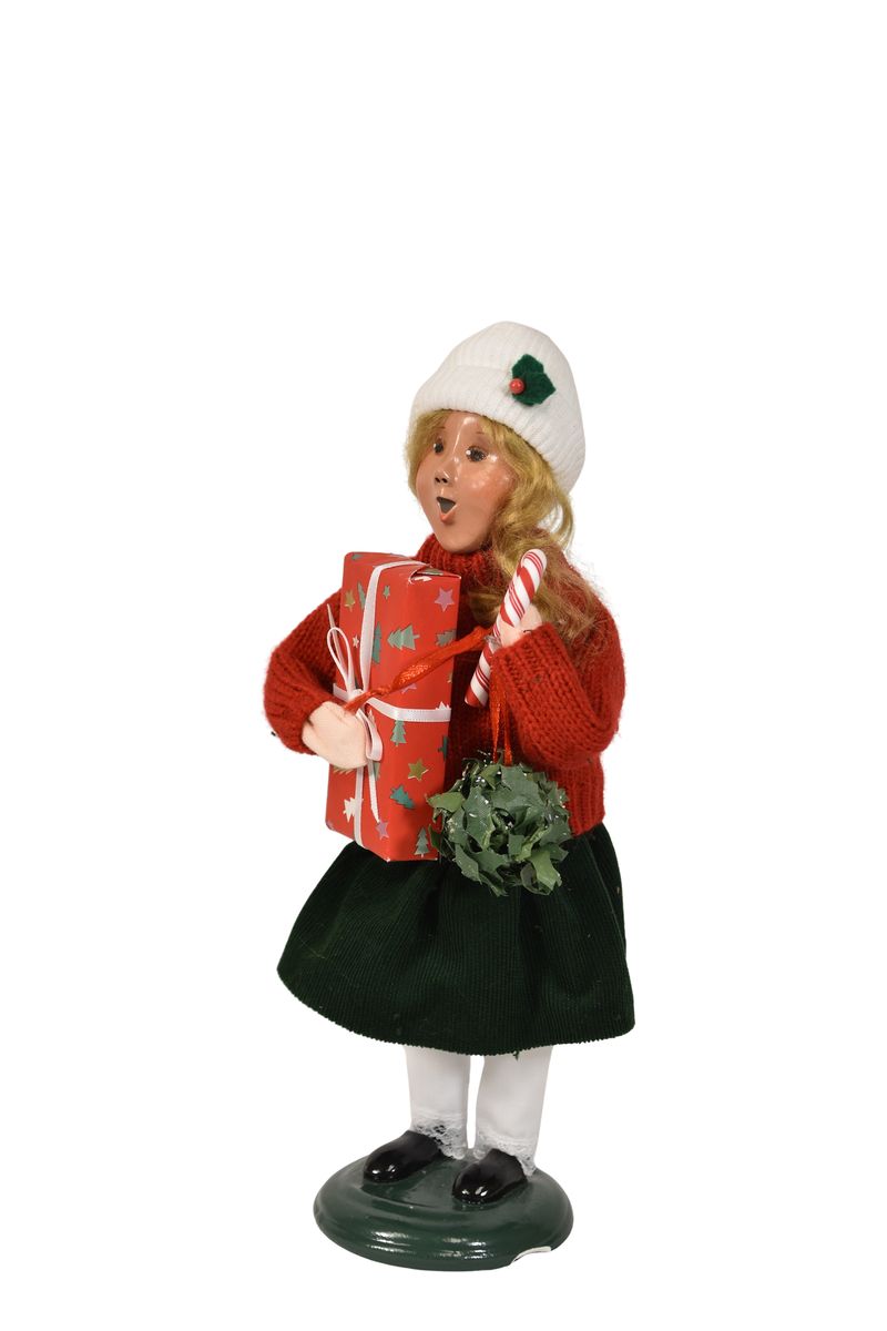 This handcrafted Byers’ Choice Shopping Girl Caroler is festive and perfect for Christmas decorating. Dressed in a cozy winter sweater and carrying toys and treats, she brings youthful excitement and holiday cheer to seasonal displays.