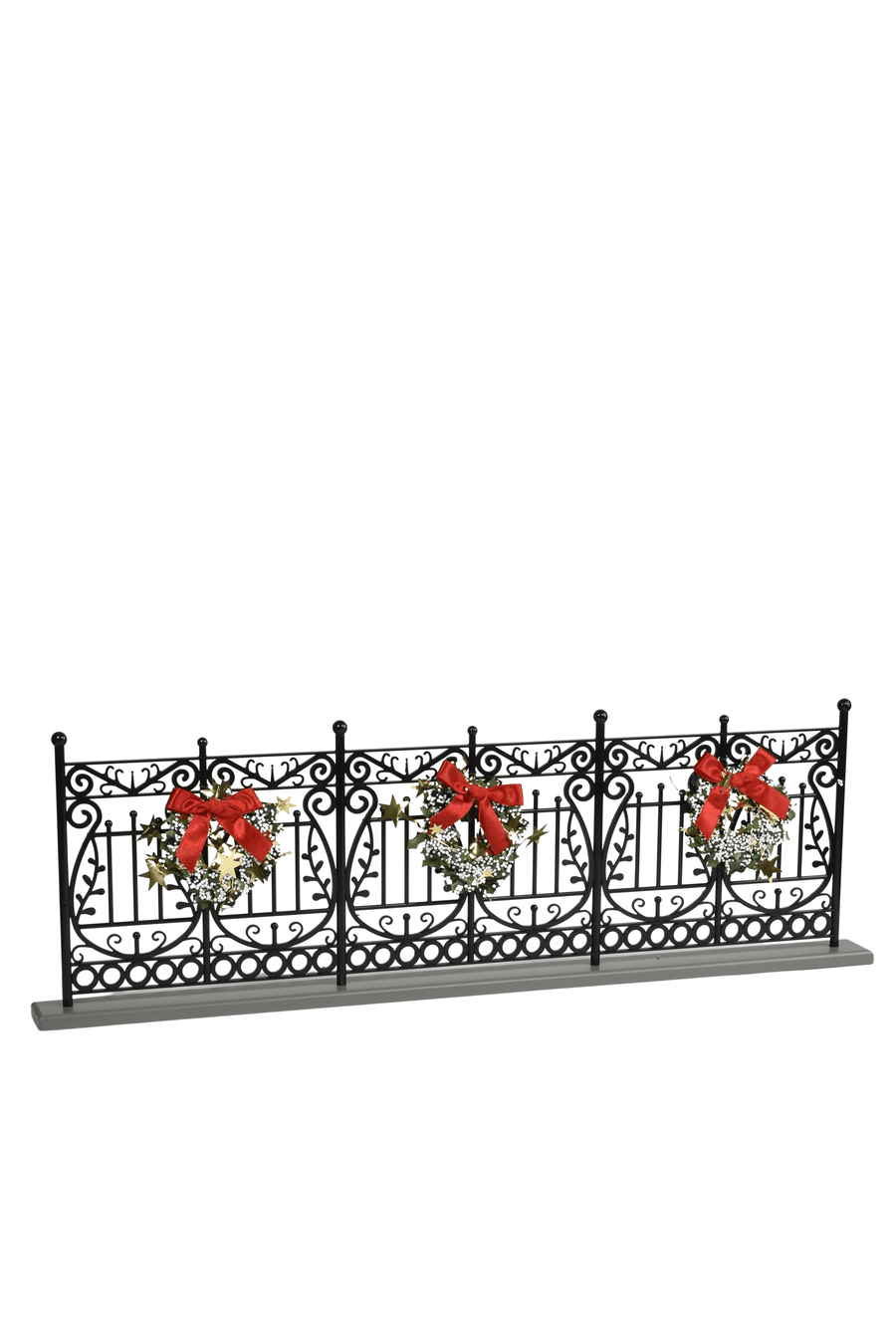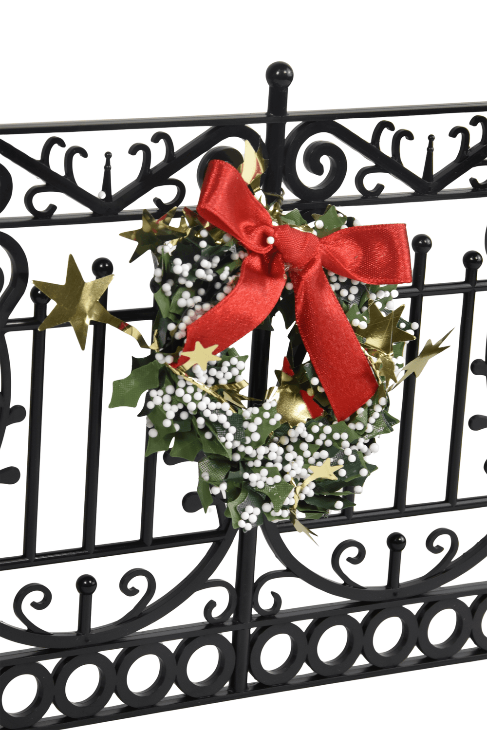 This Byers Choice Wrought Iron Fence Display Accessory is a charming way to frame your holiday scenes with festive flair. Adorned with miniature wreaths, this decorative plastic fence adds warmth and character to your Caroler displays and Christmas decorations.