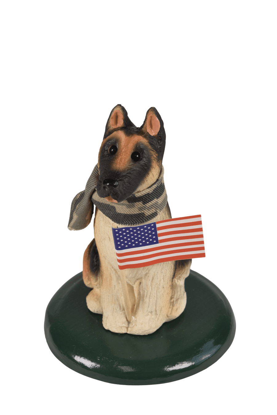 This Byers Choice Singing German Shepard with Flag Dog is a charming addition to any display to enhance your Military display and year round decorations. The holidays are a time best spent with our loved ones, and that includes our favorite furry friends. As you find the Carolers which represent your family over the mantel, don't forget to include your favorite family pets, as well.