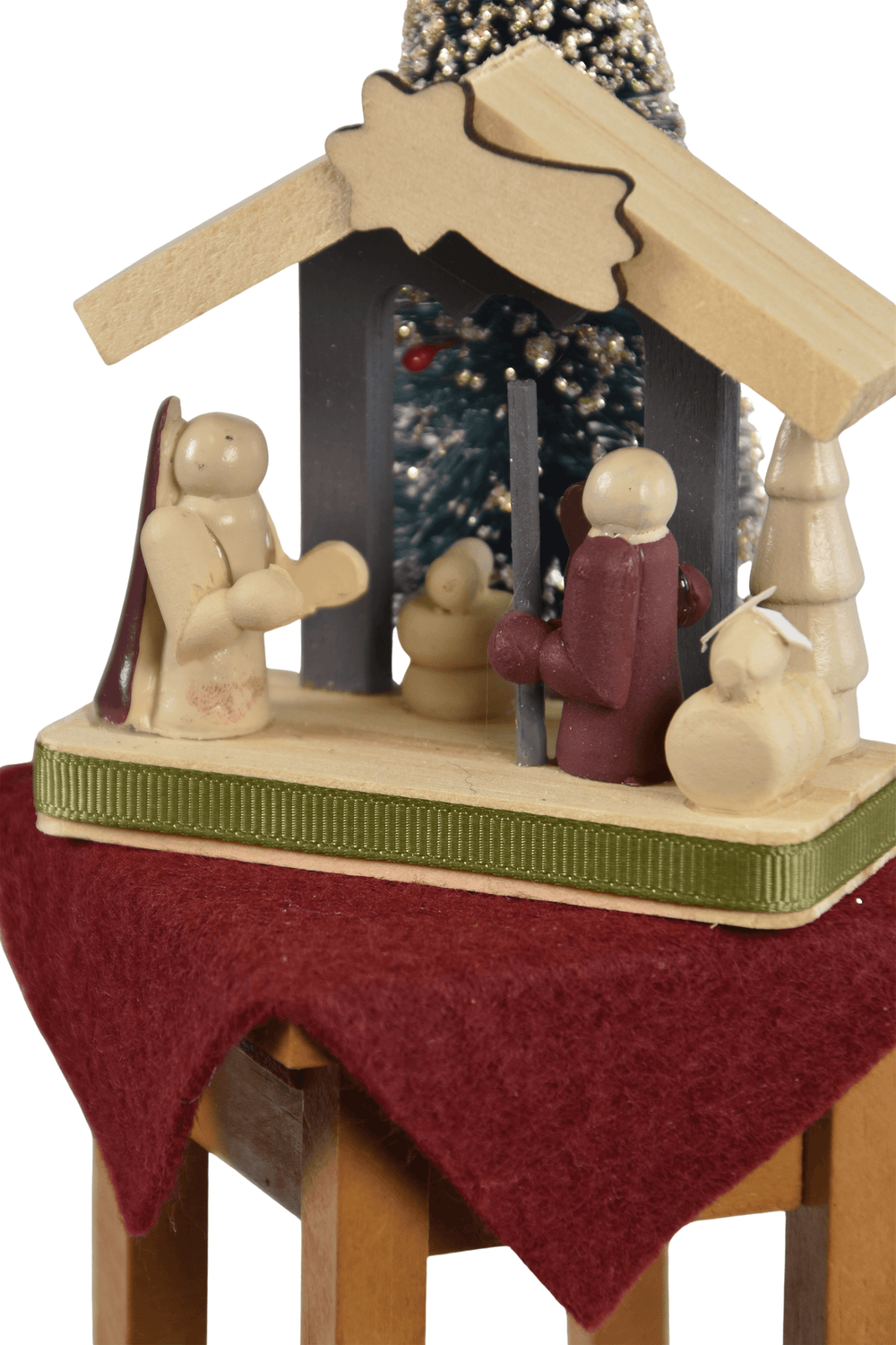 This Byers Choice Nativity Table Display Accessory is a beautifully compact way to showcase the spirit of the season. Featuring a traditional wooden nativity scene with a snow-dusted evergreen tree backdrop, this tabletop display adds warmth and reverence to your Christmas decorations.