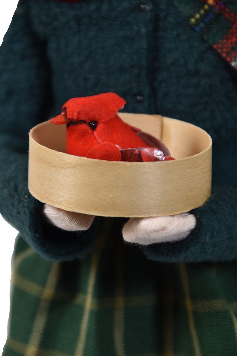 This handcrafted Byers’ Choice Cardinal Mrs. Claus Caroler is festive and perfect for the Christmas holiday season. This Cardinal Mrs. Claus figurine brings warmth to your Christmas decorations with a heartwarming gesture of caring for feathered friends on a snowy morning.