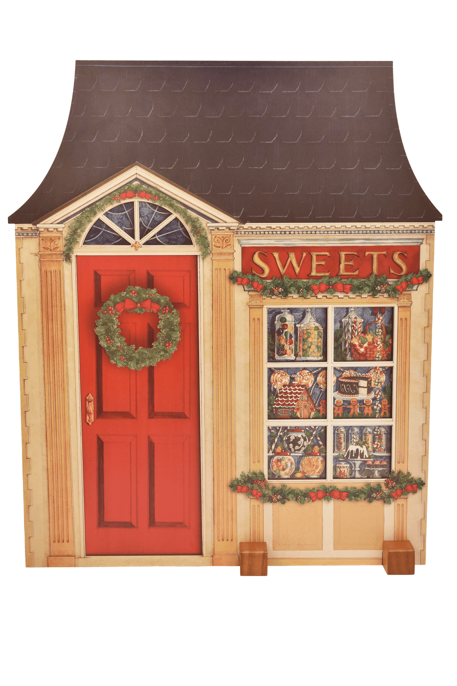 This Byers Choice Sweets Shoppe Backdrop Display Accessory is a charming addition to your Christmas decorations, setting the scene for any Carolers with sweet treats. With its old-timey candy shoppe façade and windows brimming with delectable holiday delights, it brings nostalgic warmth to any holiday display.