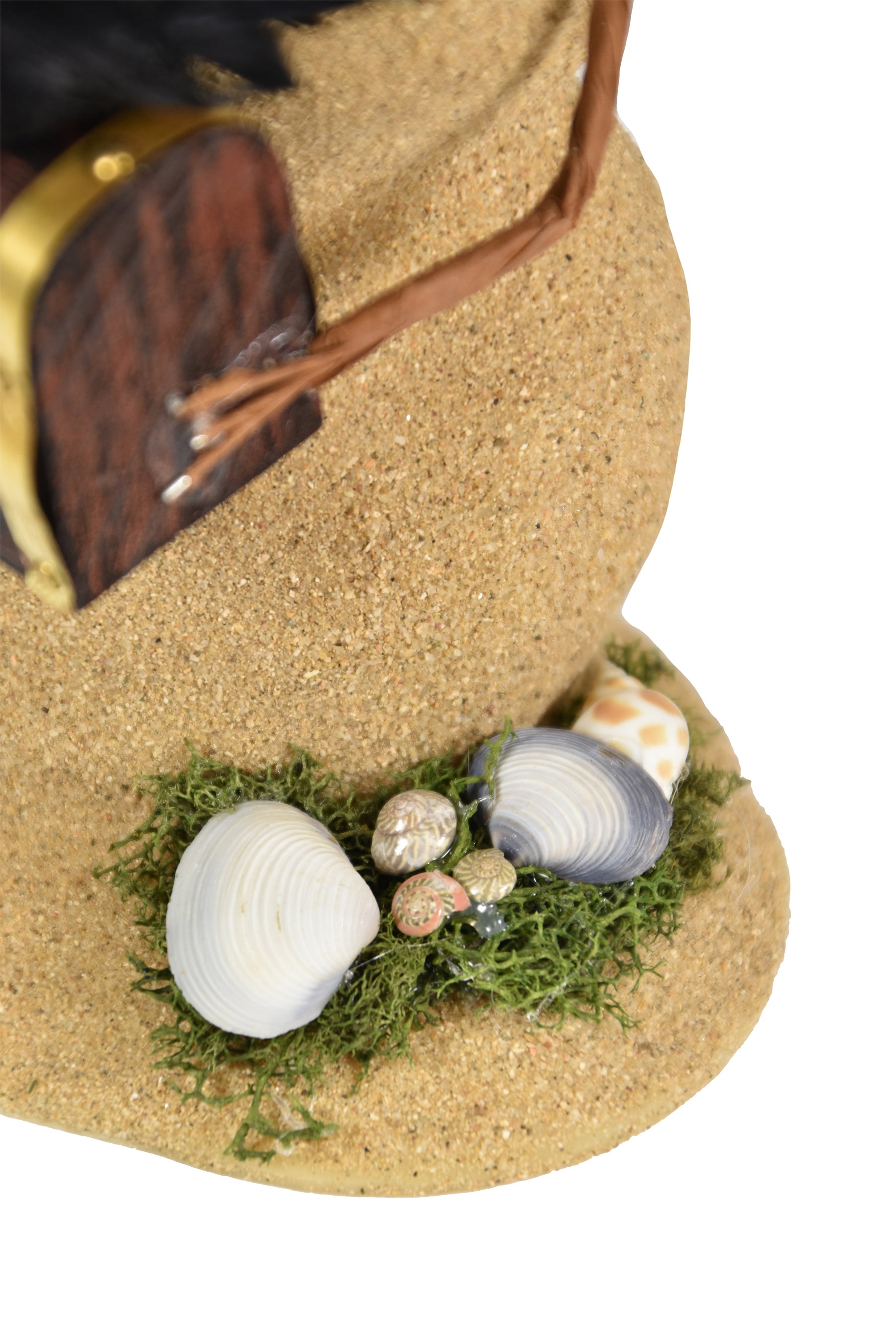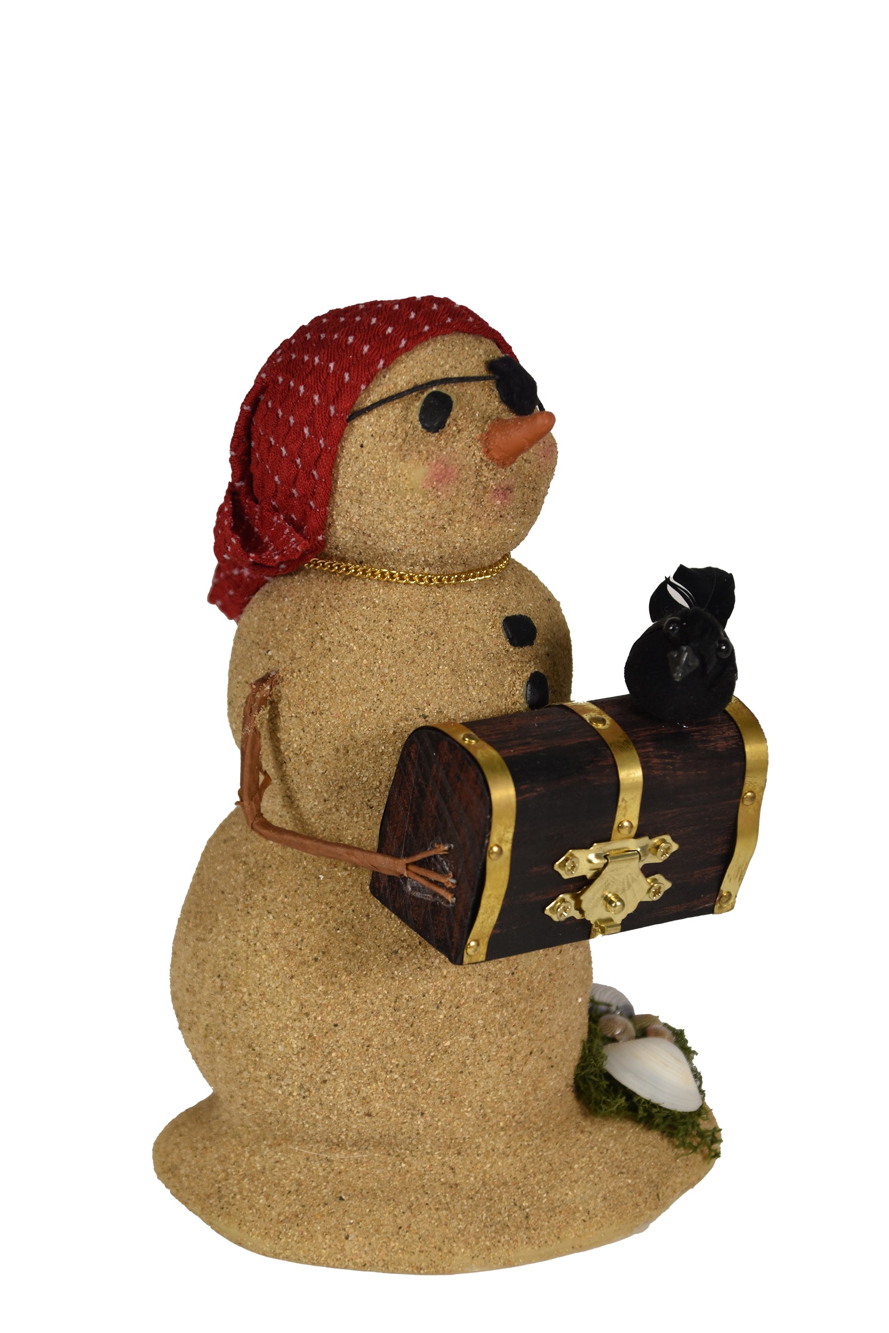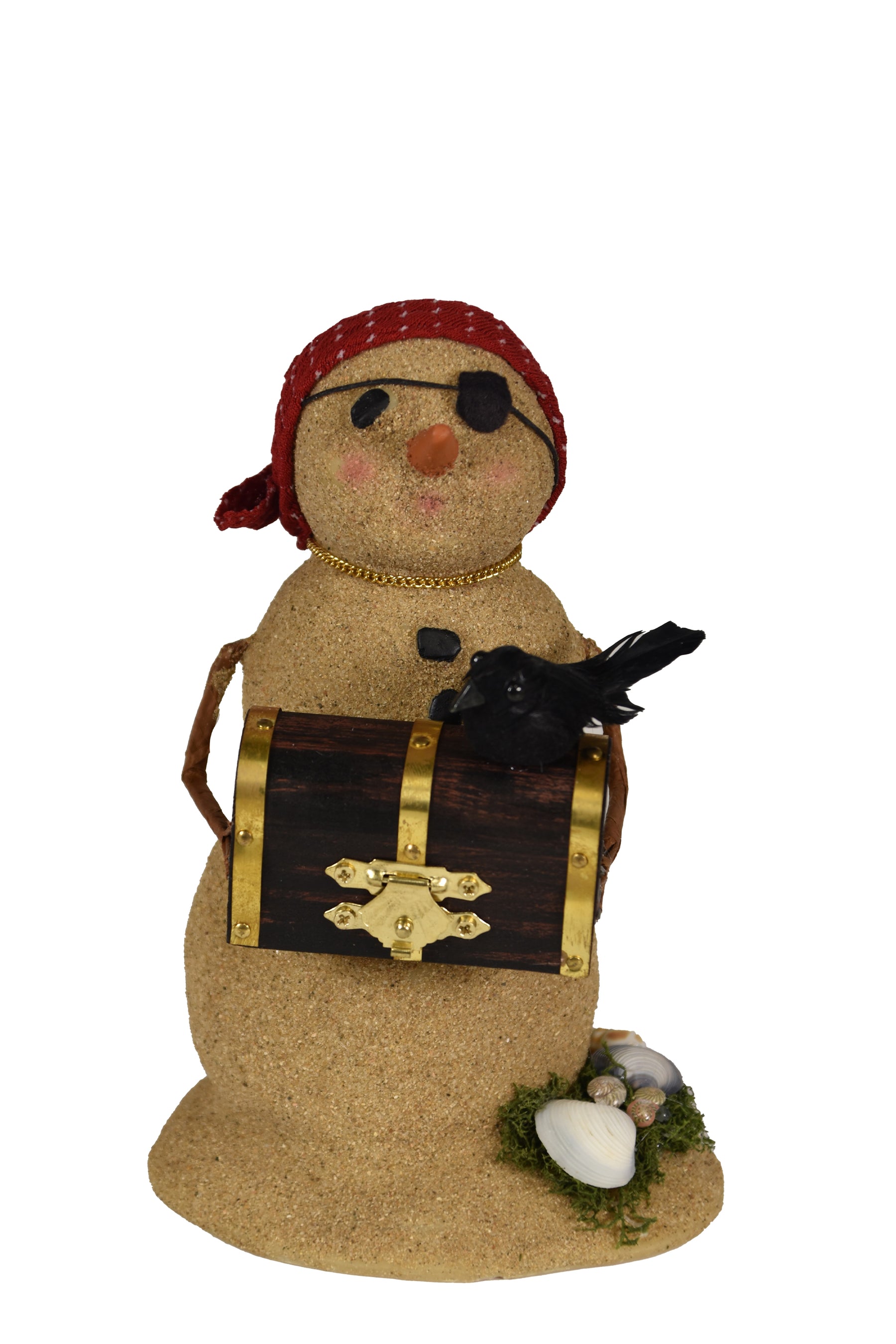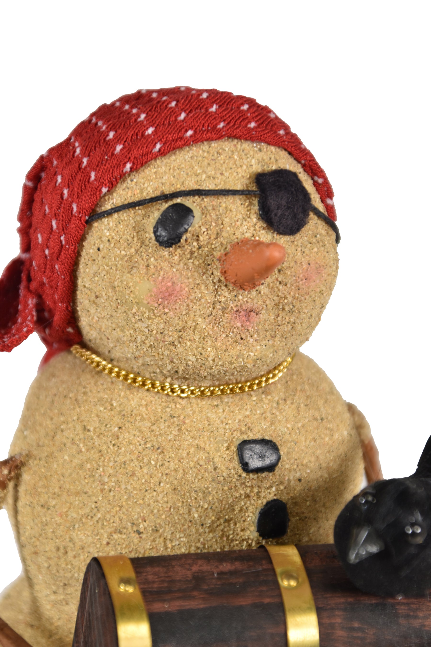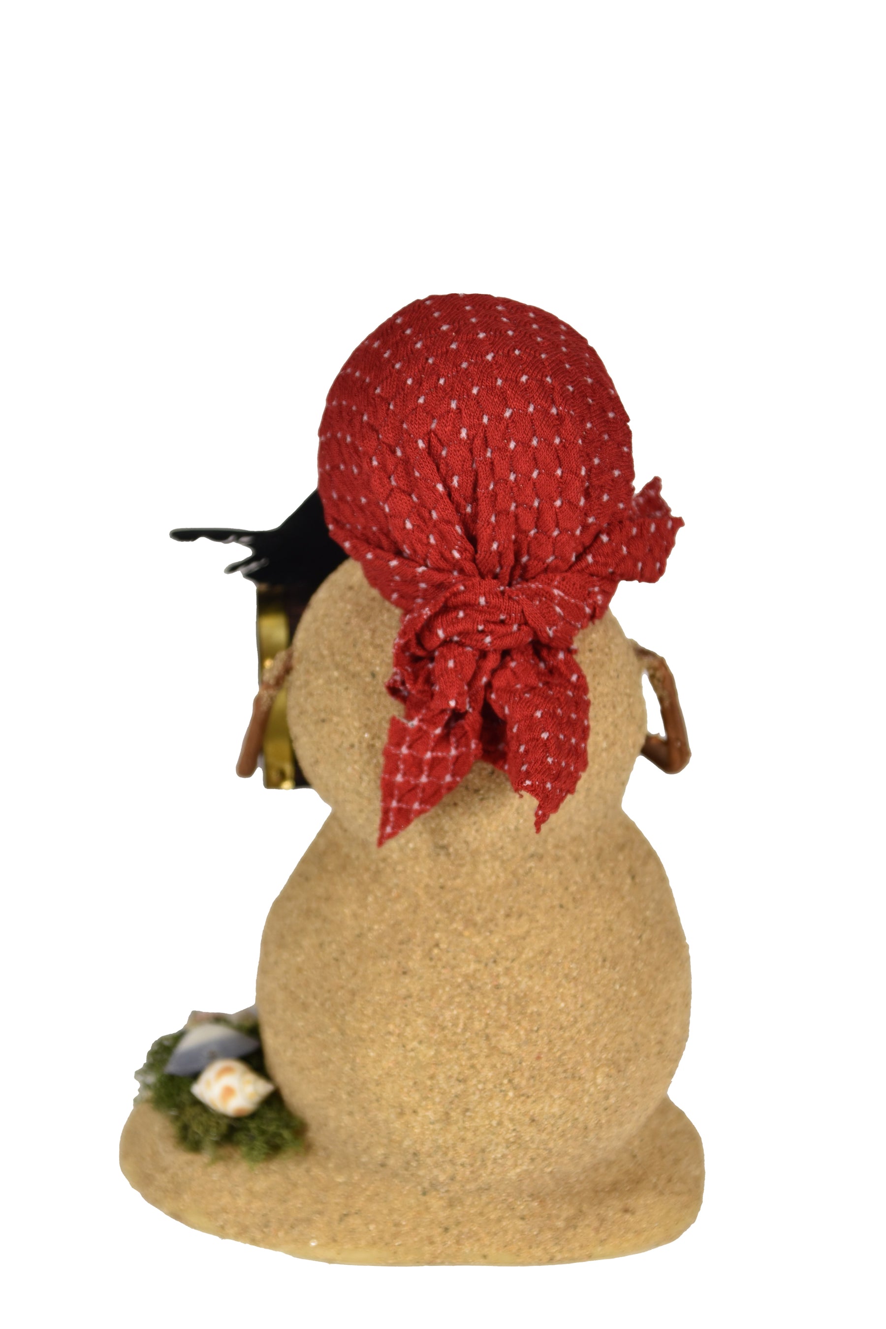 Wearing a red bandana and black eye patch, this Pirate Sandman looks ready to guard his hard-won treasure long after the ship has docked. The crow perched atop his chest adds a touch of intrigue, recalling tales of hidden riches and whispered secrets of the sea—making him a fun and distinctive accent for coastal scenes and pirate-inspired collections.