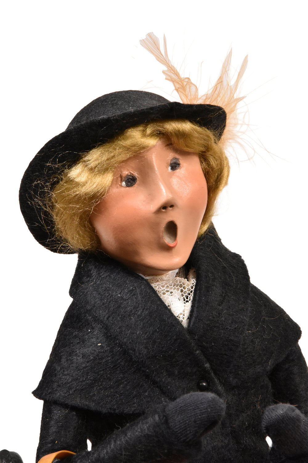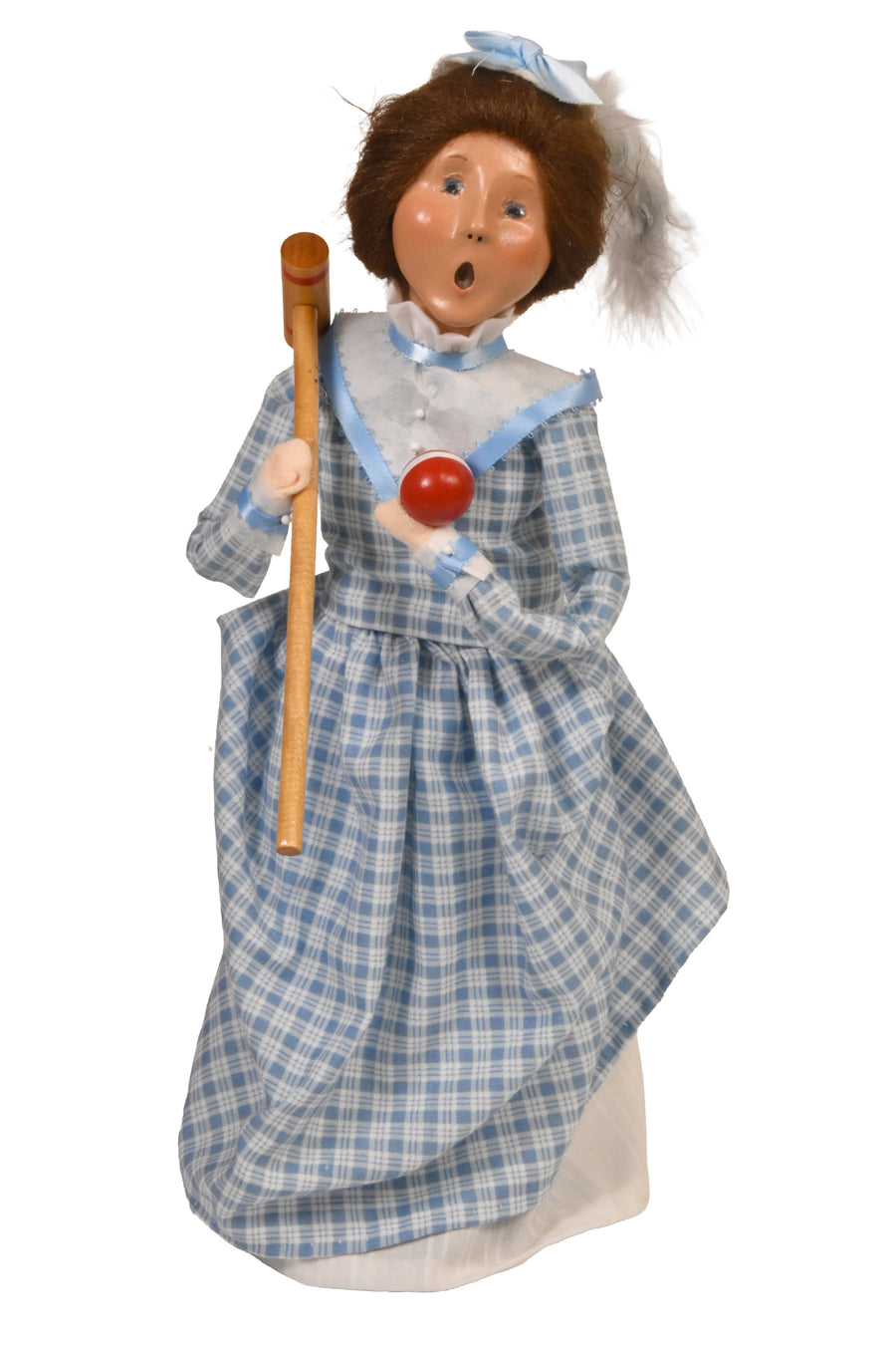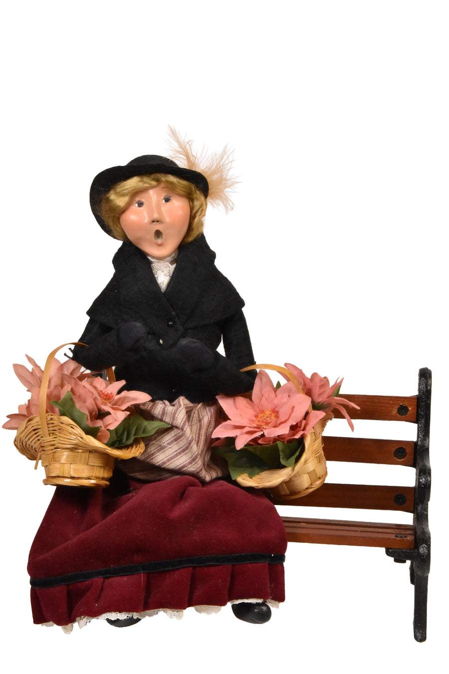 This handcrafted Byers’ Choice Amish Woman on Bench is a charming vintage piece from our 2003 collection. Traditionally dressed and seated on a simple bench, she holds a brightly colored quilt she has carefully worked on, capturing a quiet moment of craftsmanship and heritage.