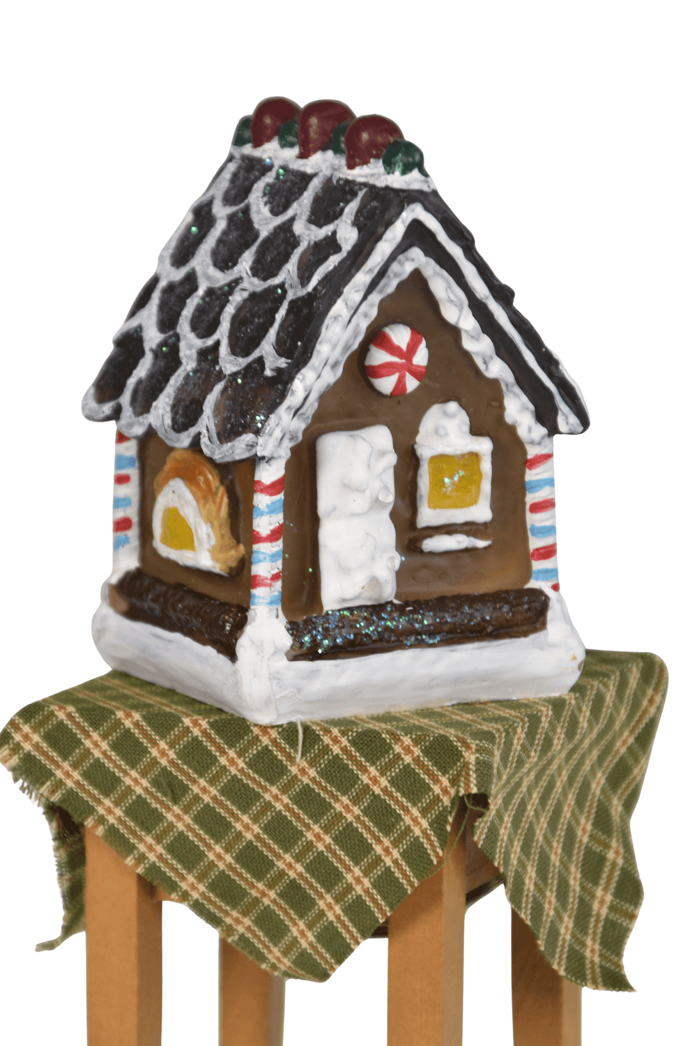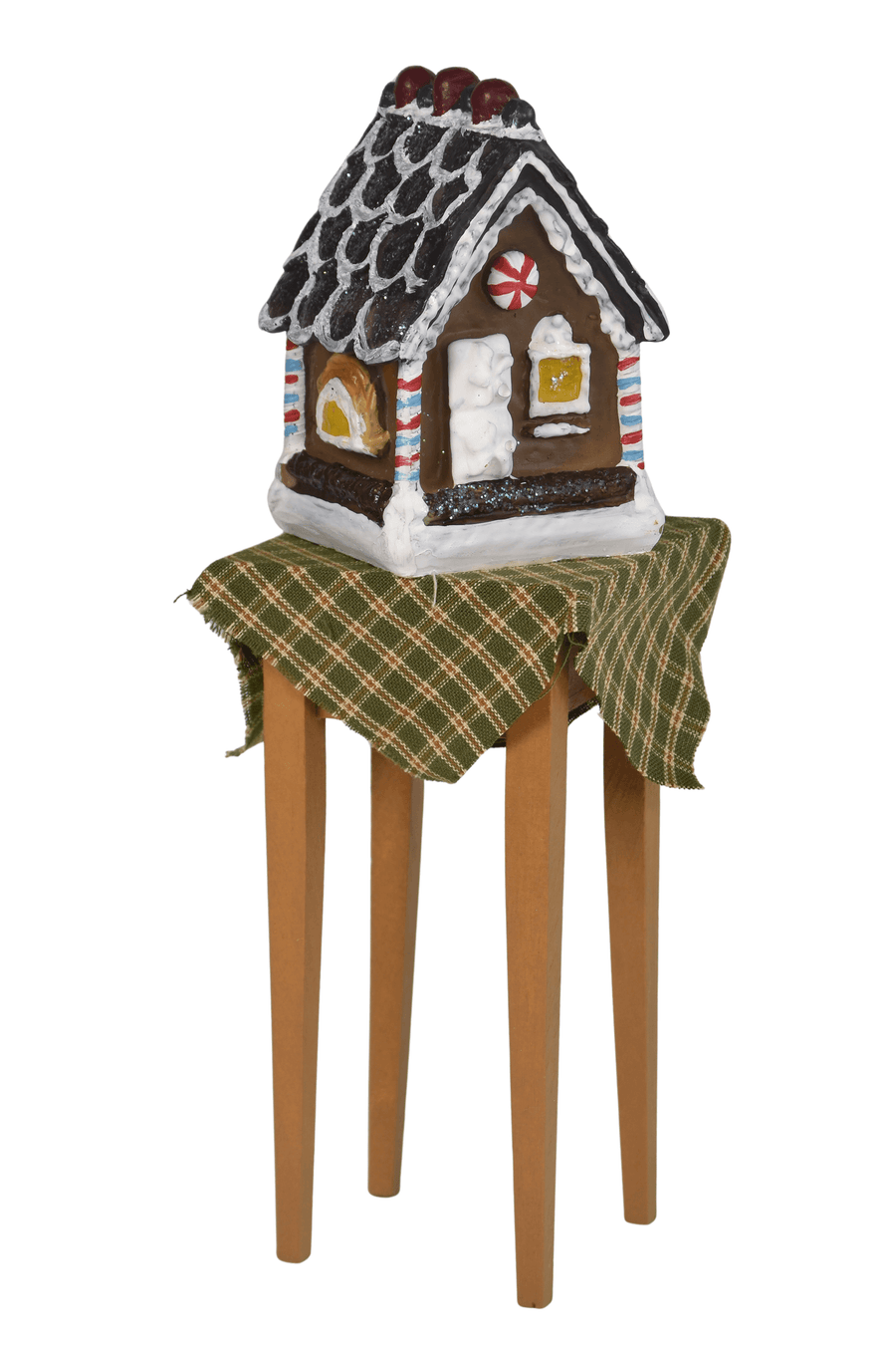 This Byers Choice Gingerbread Table Display Accessory is a delightful addition to your Christmas decorations. Featuring a beautifully detailed gingerbread house atop a festive table, it adds a sweet and whimsical touch to your holiday Caroler displays.