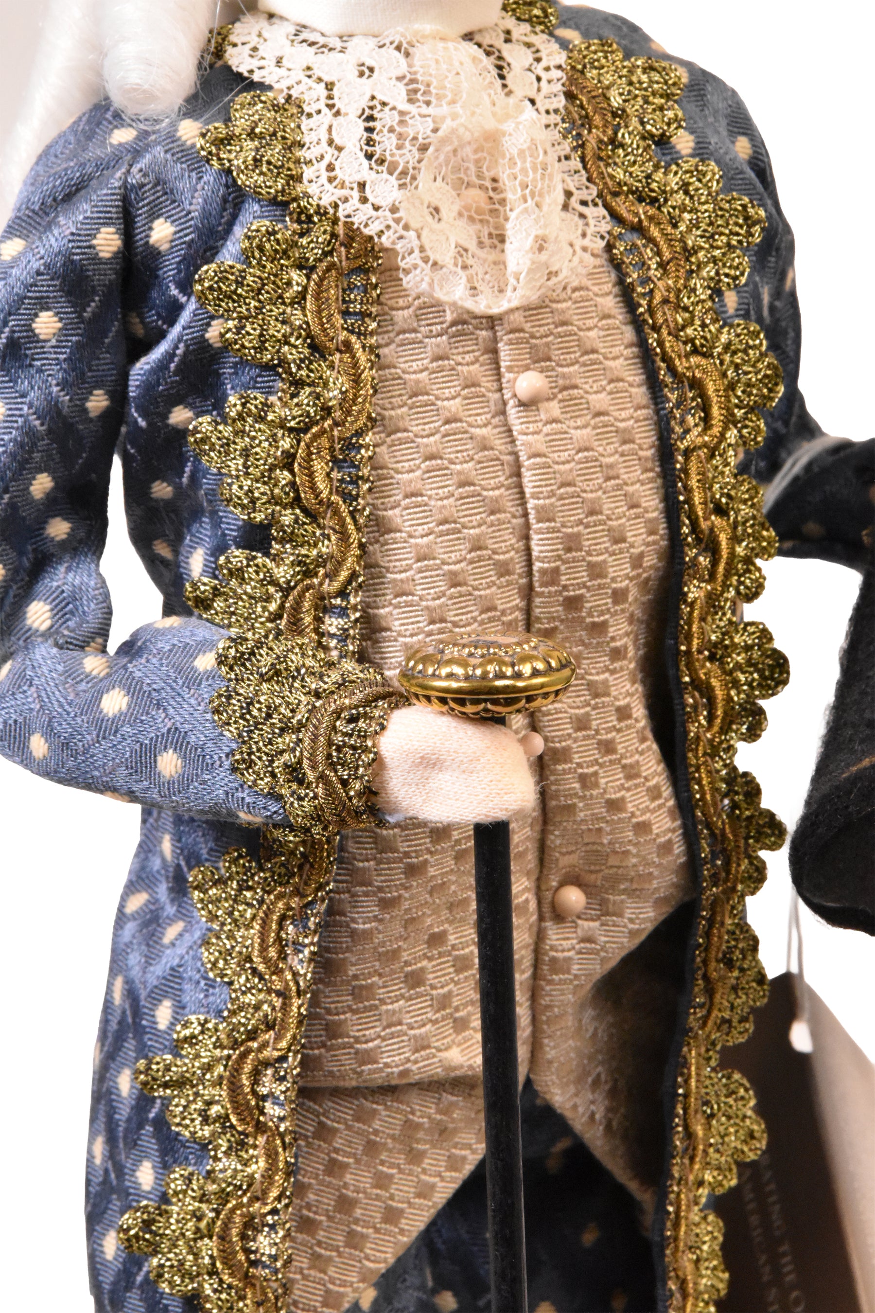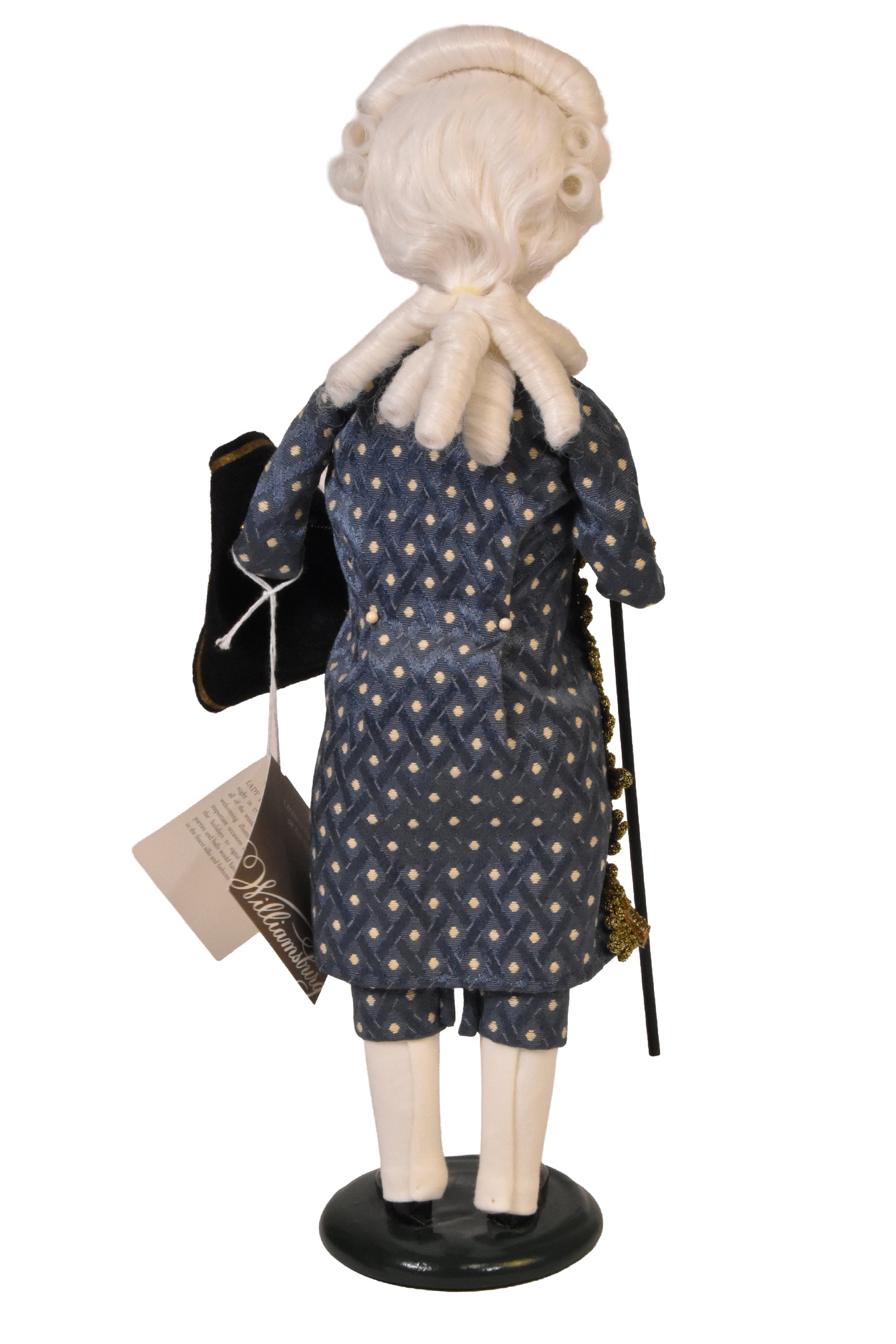 Inspired by the cherished Grand Illumination festivities in Colonial Williamsburg, this figure reflects a time-honored celebration of light, community, and holiday spirit. With refined dress and festive presence, he evokes the warmth and pageantry of this historic tradition, where candles, fireworks, and fellowship mark the season.