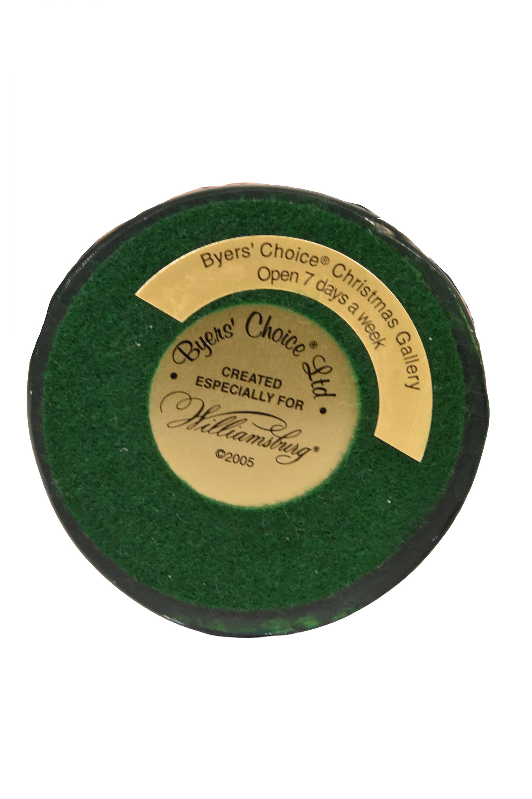 This handcrafted Byers’ Choice Grand Illumination Man is a distinguished vintage piece from our 2005 collection. Designed exclusively for Colonial Williamsburg, he is ornately dressed in his finest attire, celebrating the historic Grand Illumination tradition with elegance and colonial charm.